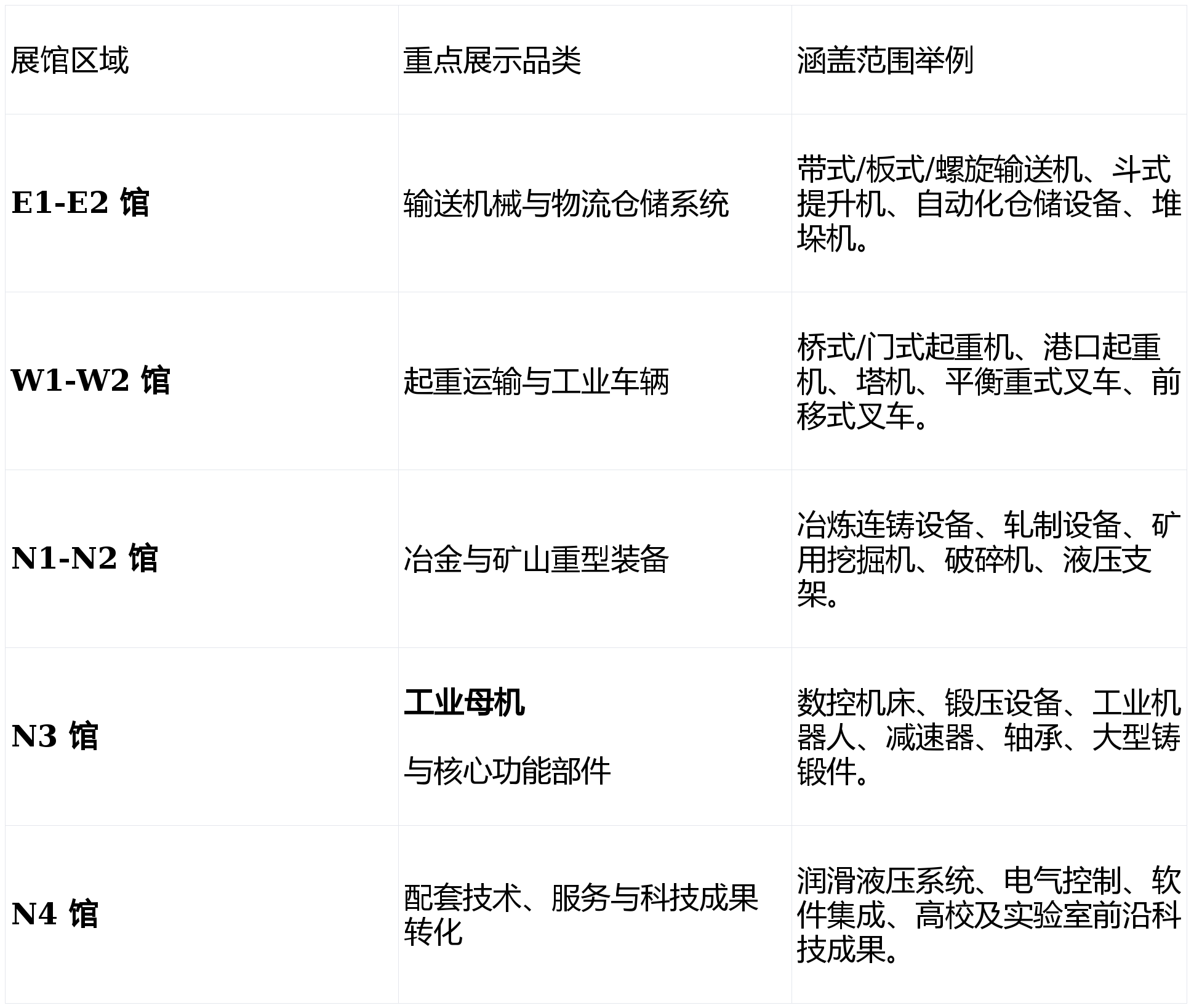 本届展会将正在上海新国际博览核心的多个展馆举行,展品笼盖从根本材料、焦点部件到零件系统、聪慧处理方案的全财产链。以下为基于沉型机械行业展览老例的展馆结构规划概览,旨正在为参展商取不雅众供给清晰的参不雅,具体分布以从办方最终发布的展位图为准。