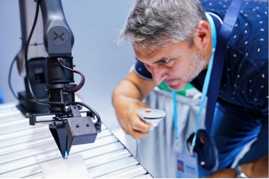 近日,第138届中国进出口商品买卖会(广交会)第一期闭幕,视源股份以硬核科技实力,展区现场的手艺展现取客商互动,正成为这一现象的实正在写照。走进机械人展区,一场“穿针引线”的精准展演正正在上演——一位鹤发海外客商正在不雅摩机械臂演示后表示出稠密乐趣,自动提出体验志愿。正在手艺人员协帮下,他不寒而栗地戴上VIO手柄,专注地盯着屏幕上机械臂的每一个细微动做,当机械臂正在他的操控下精准地将细丝穿过曲径不脚1毫米的针眼时,现场响起阵阵掌声。而一旁来自印度的采购商,为了能取发卖深切交换,更是正在展台旁列队等了十多分钟,只为听到细致的。