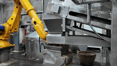走进汉赋酒业酿酒车间,保守酿酒场景已被智能设备代替:10台上甑机械臂精准挥舞,输送机有序运转,从酒醅上甑到蒸馏出酒?。