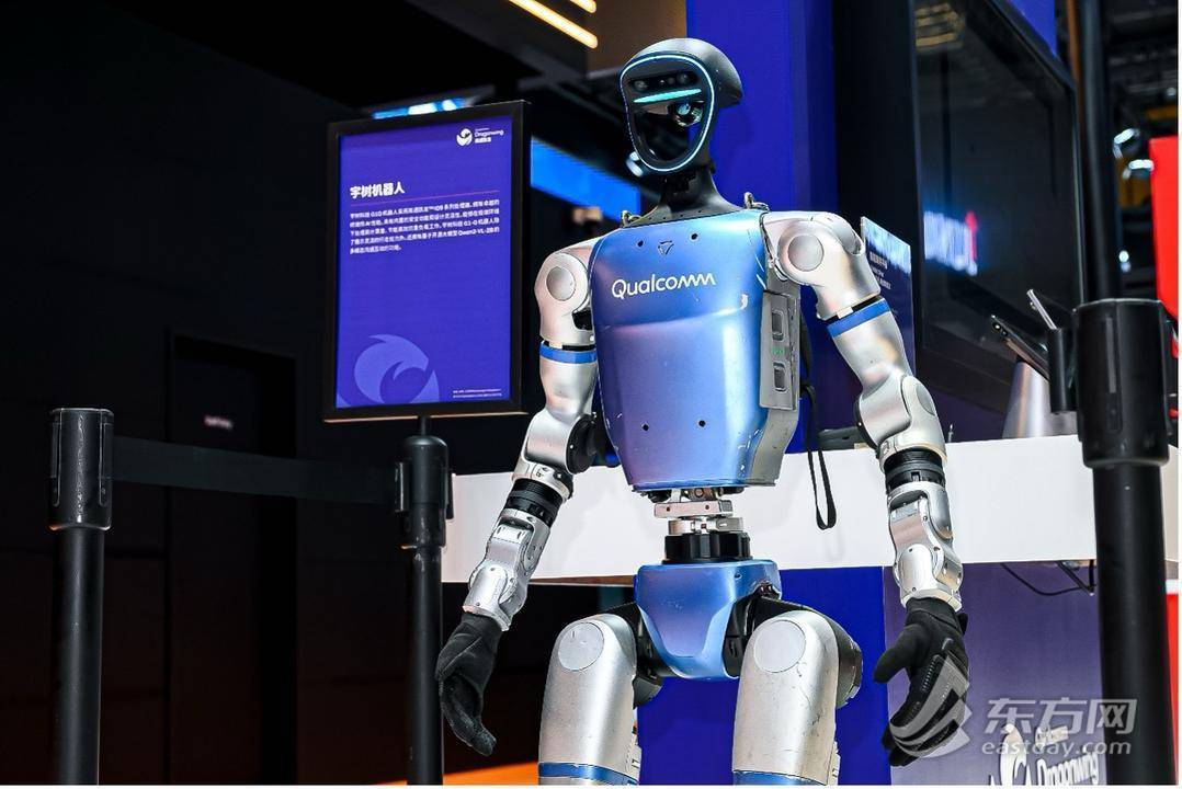 进博会八年“全勤生”高通本年的展台上,多家中国厂商搭载其挪动平台的旗舰新品外表态,一台喷涂着高通 Logo 的人形机械人也成为核心。