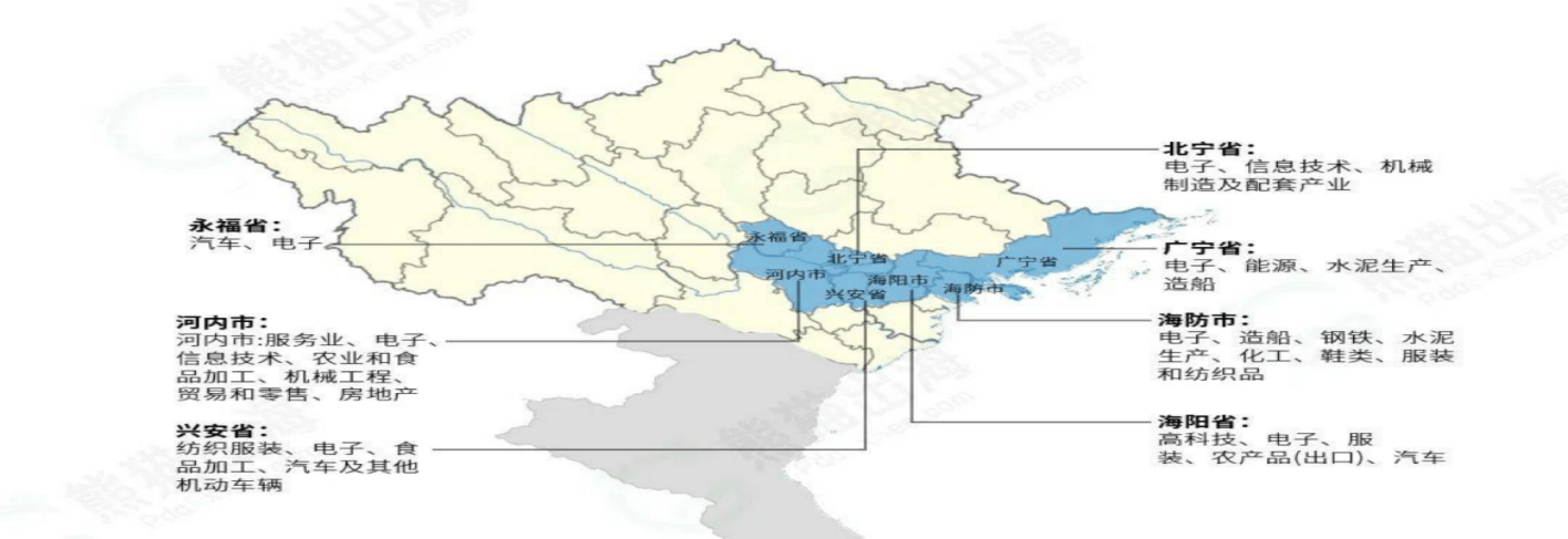 北部财产集群堆积区:以河内为核心的北部经济区是越南电子制制、汽车制制、冶金钢铁、机械制制、材料手艺的财产堆积区。